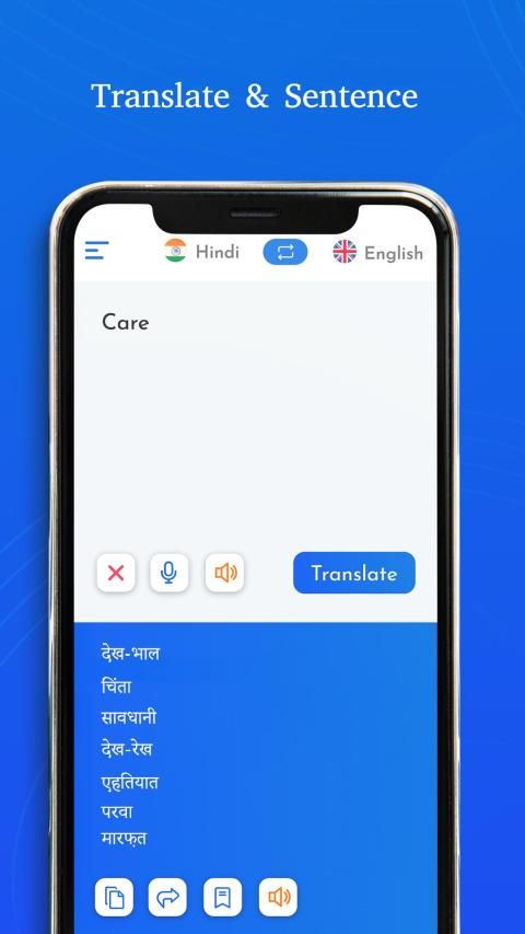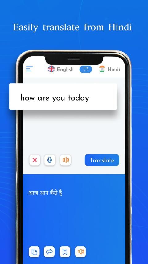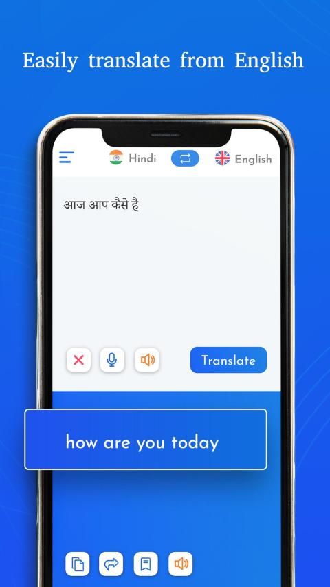 Translate from Hindi to English English to Hindi. In-built Hindi keyboard given.