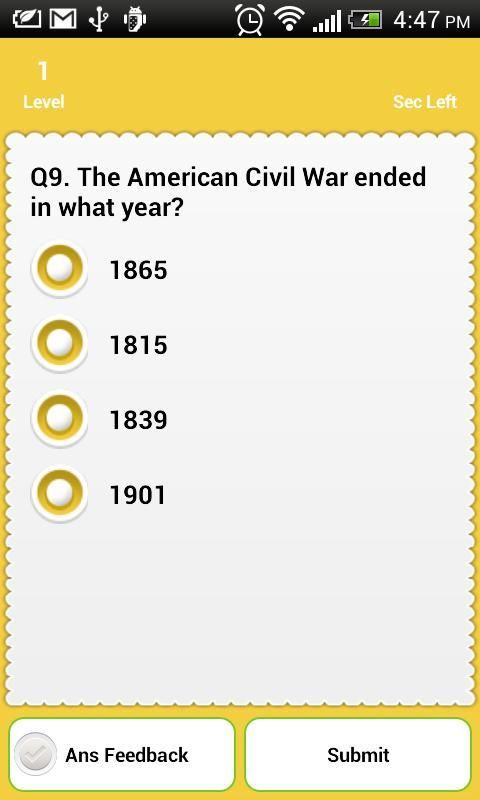Sejarah kuis game adalah cara yang menyenangkan untuk mempraktekkan pengetahuan sejarah pada ponsel android Anda.