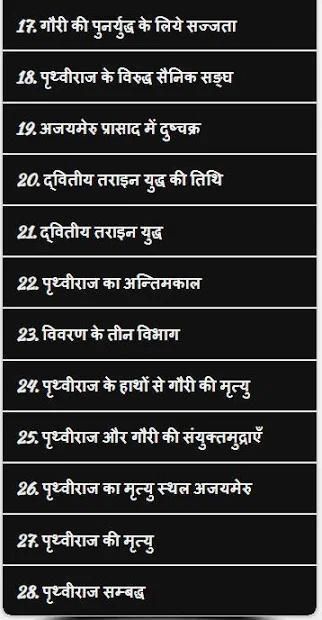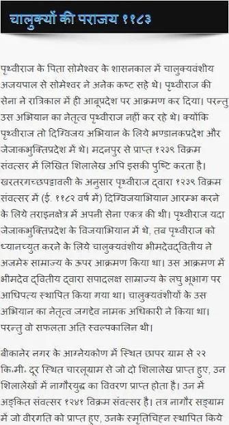 Aplikasi ini telah diberi informasi tentang Biografi Prithviraj Chauhan dalam bahasa Hindi.