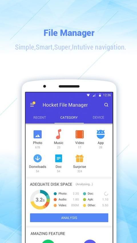 hocket file manager, terbaru 2018 versi baru file yang pro manager aplikasi, membantu Anda menangani dan berbagi semua file yang tersimpan di penyimpanan lokal dan kartu microSD. Dengan desain material, berkas hocket manajer adalah yang terbaik file manager dan transfer file alat untuk membuat Android Anda lebih mudah.