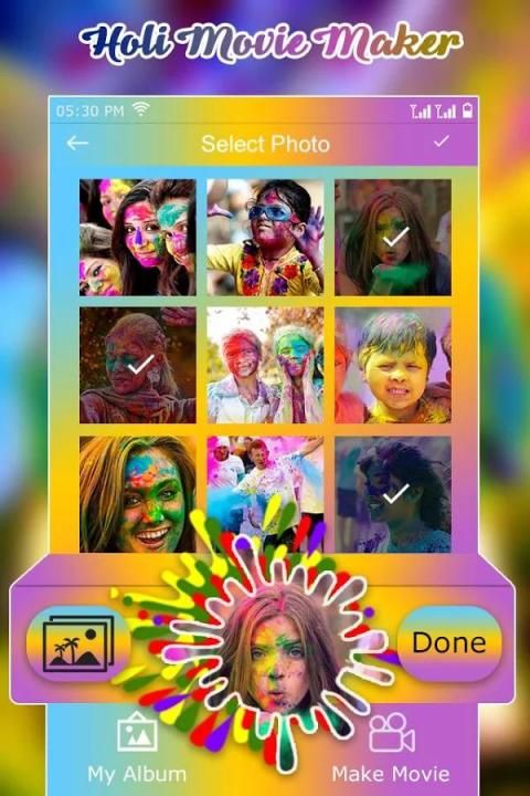 Holi Video pembuat App membuat slideshow video dengan foto dan musik di Android. Dengan banyak efek untuk video, Anda dapat dengan mudah video yang slide show yang indah pembuat Holi Video - Holi Video & Holi Video Maker adalah Editor video profesional yang akan membantu Anda membuat cerita indah Holi.