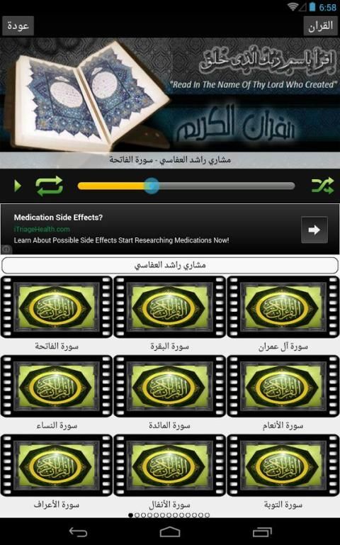 Aplikasi ini menawarkan koleksi terbesar bacaan Al-Quran selama berbulan-bulan pembaca dan Senat