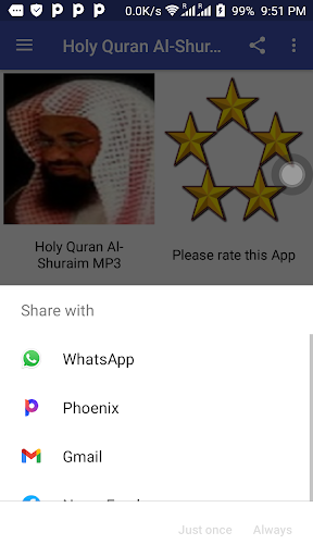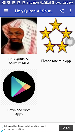Aplikasi Holy Quran Al-Shuraim MP3 memungkinkan Anda untuk mengunduhnya dan mendengarkan tanpa koneksi internasional, Ini adalah aplikasi offline gratis, cukup unduh aplikasi dan dengarkan Al-Quran yang dibacakan oleh Sheikh al-Shuraim Situs Jika Anda membutuhkan al-Quite AL.Quran recitation oleh Saud al-Shuraim Anda dapat memeriksa aplikasi saya yang lain melalui katalog saya.
