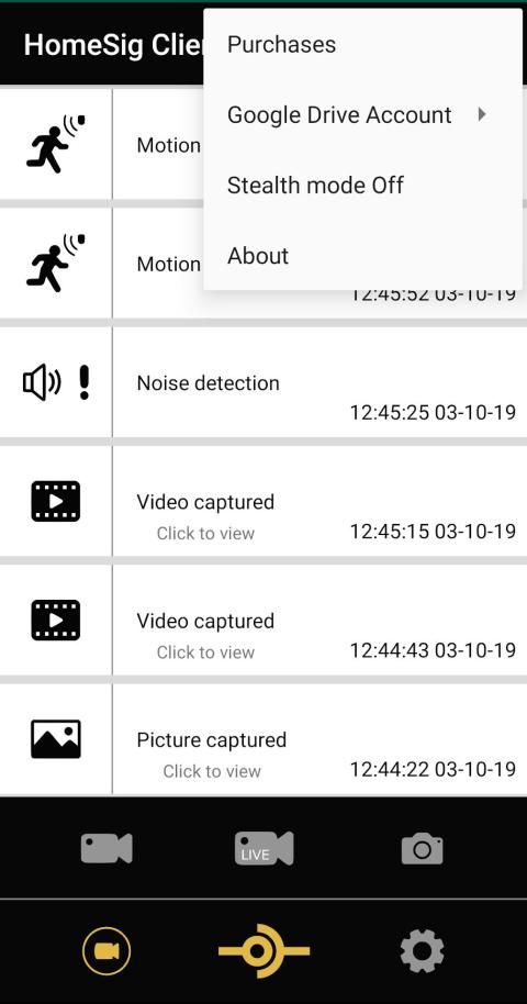 Ini adalah Klien untuk Server HomeSig. Sambungkan ke kamera keamanan Anda dengan menggunakan Akun Google yang sama dan Anda akan bisa mendapatkan deteksi gerak dan suara, pemberitahuan waktu nyata, ambil gambar dan video, unggah otomatis ke Google Drive Anda dan streaming langsung kamera waktu nyata.