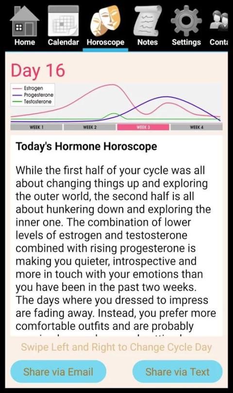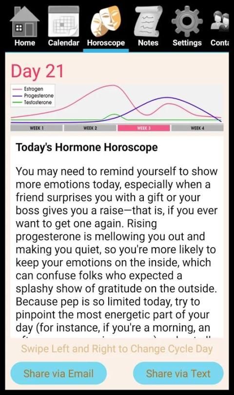 Hormonology ® aplikasi yang menunjukkan wanita yang mereka suasana hati, energi, kehidupan cinta, kesehatan dan akan lebih banyak lagi setiap hari hanya berdasarkan mana mereka berada dalam siklus bulanan mereka