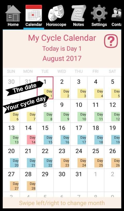 New calendar look with cycle day highlighted