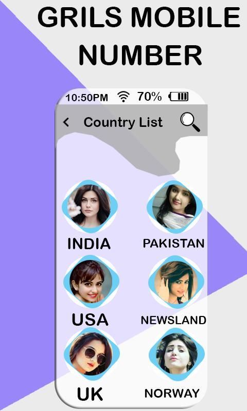 Hot Girls Mobile Numbers : Girls numbers for Chat is a free app for getting cute girls mobile numbers to chat or call them. Girls mobile number for free chat will help you find hot girls from different countries in the world and will let you text with them. Finding cute hot girls is very difficult to find but this app makes it easy to find the hot girls and start chat and if they make friendship then invite them for date and enjoy a company with sweet girls.