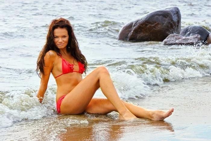 Foto cewek berbikini pose dipinggir pantai yang pastinya bikin jadi hot dan gerah banget..