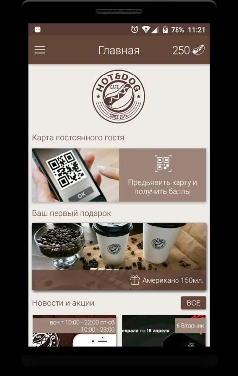 Melembagakan kartu bonus untuk setiap pesanan di kafe kami dan mendapatkan poin.