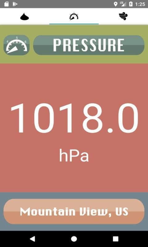Aplikasi ini terdiri dari tiga fragmen masing-masing menampilkan data cuaca yang berbeda. kelembaban ditampilkan dalam persentase. tekanan atmosfer di hPa (hectopascal) dan kecepatan angin ditampilkan dalam meter per detik secara default.