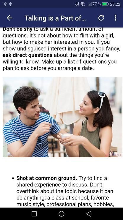 How to dating a girl for the first time? How to pick up a girl ? how to seduce a girl? With our How To Charm a Girl application, you will find several techniques to approach the girl of your dreams, your future lover.