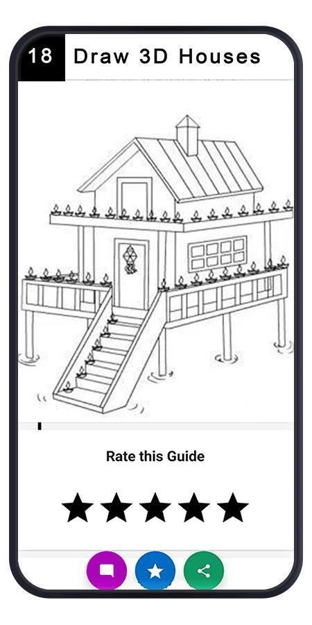 If you want to learn how to draw 3D House and you found any difficulty, here is an app for you where you can find 3D House drawings to learn how to draw amazing 3D House drawings with easy steps, just following the step by step drawing lessons.