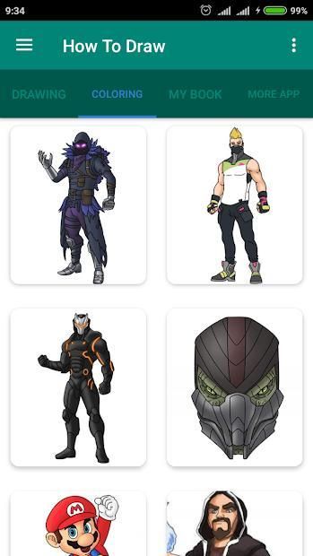 This application is a design and art learning to draw skin from the characters of battle royale, clash and others. An application that is able to teach you how to draw step by step easily. Only with 15 minutes you can draw raven, drift, Omega from the photos of the battle royale and other game characters. An application that is easy to use but has great benefits.