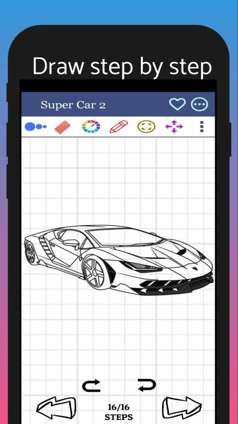 ⚡ Our drawing lessons app includes a nice number of materials and cars that you could choose from and start forging your car drawing skills. Updates will come soon with and more cars