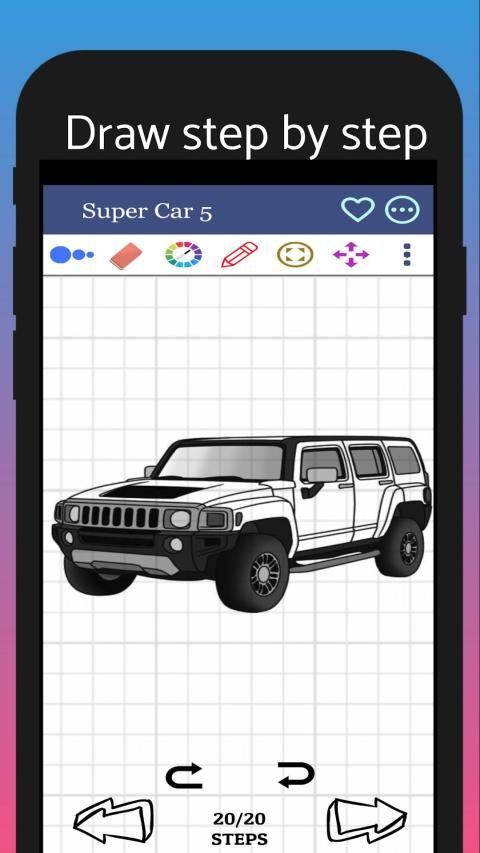 Do you want to learn how to draw? Do you want to learn step by step how to draw Cars and luxury cars? all good! We are happy to provide you an offline drawing cars lessons app that will help you master luxury car and fancy car drawing fast and easy. Just follow the step by step guide and realize your first artistic design straight way! Maybe you are the next Pablo Picasso