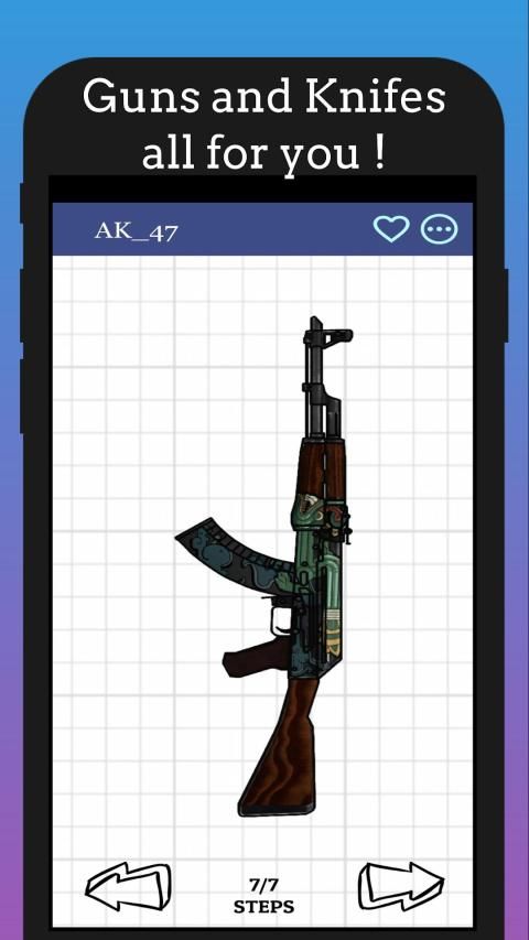 Do you want to learn how to draw? Do you want to learn step by step how to draw csgo weapon? all good! We are happy to provide you an offline drawing lessons app that will help you master gun and weapon drawing fast and easy. Just follow the step by step guide and realize your first artistic design straight way! Maybe you are the next Pablo Picasso