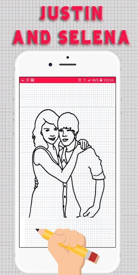 Bagaimana Menggambar Justin Bieber dan Selena Gomez Fans adalah sebuah aplikasi yang mengajarkan Anda cara menggambar Justin Bieber dan Selena Gomez beberapa karakter langkah demi langkah.