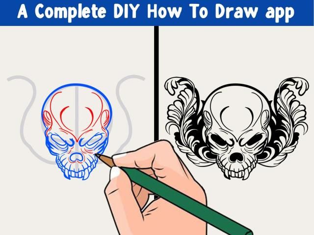 App that teaches you how to draw Skull Tattoo designs step by step in easiest way..! The app contains large collection of simple step by step drawing tutorials for drawing Skull Tattoos!