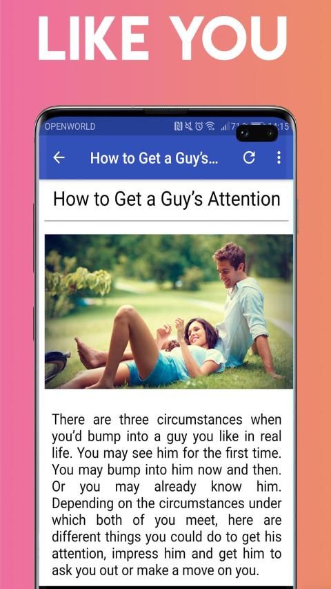 2.- Look your best. Without being fake, make an effort to look your best around the guy you like. Guys are visual creatures so looking your best will simply spin the odds in your favor. But most importantly, when you look your best you'll feel your best - giving you the confidence you need to let your awesome personality shine through.