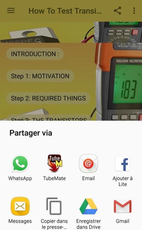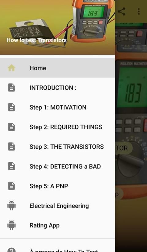 Aplikasi ini akan memberikan informasi lebih jauh tentang bagaimana untuk menguji komponen elektronik pula cara untuk menguji transistor dengan multimeter.