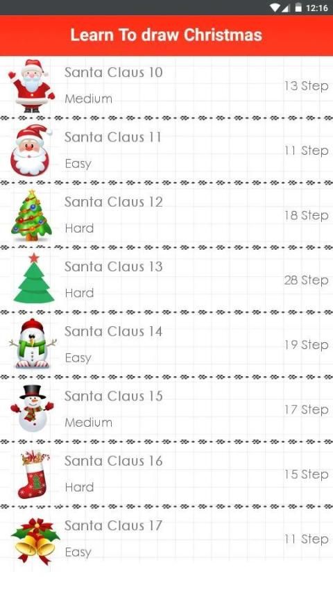 The "Learn To draw Santa Claus" app includes a lot of drawing such as:
