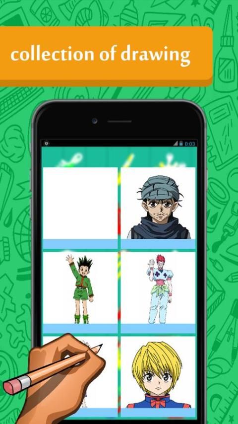 Kurapika, Isaac Netero, Leorio Paradinight, Ging Freecss, Ging Freecss, Gon Freecss, Hisoka Morow, Hanzo, Illumi Zoldyck, Killua Zoldyck dan lebih Cukup pilih karakter anime Anda ingin menarik dan mulai mengikuti langkah demi langkah tutorial untuk mendapatkan tepat salinan hasil imbang di telepon Anda.