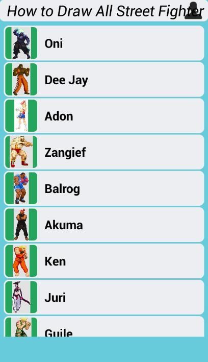 Dalam langkah sederhana memungkinkan Anda untuk melakukan gambar fantastis, hanya mengambil kertas dan pensil, pilih karakter kartun terbaik yang Anda suka dan ikuti petunjuk langkah demi langkah. Cara menggambar Semua Street Fighter app Hal ini sangat mudah digunakan.