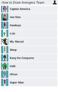 Let’s draw your favorite item from Avengers Team Characters step by step in a new application for mobile drawing! just take a paper and a pencil, choose the characters you like. It is very easy to use.