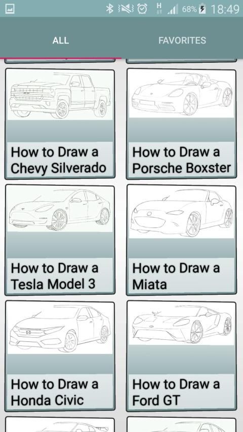 Learn how to draw cars and improve your skill drawing cars in no time with the help of our simple application. Whether you're an art teacher, art student, or just a hobbyist artist it does not matter you will find the step by step education drawing cars that will give you the ability to bring those images in your mind into paper reality.