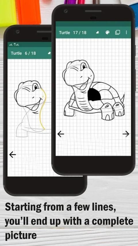 • aplikasi termasuk banyak gambar seperti: karakter kartun, hewan, mobil, naga, pesawat, bunga, dan banyak lagi!