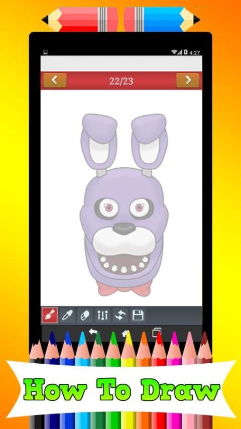 Menarik karakter favorit / mengubah warna kuas. / Sketsa karakter kartun (Freddy Fazbear, Foxy, Bonnie, Ennard, Baby)