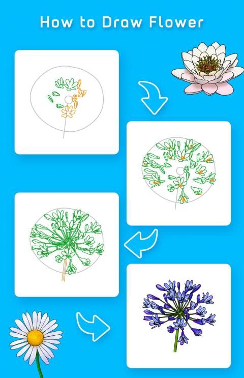 Aplikasi ini adalah instruksi langkah demi langkah yang akan mengajarkan Anda belajar menggambar bunga. Seperti guru seni pribadi, ini akan mengajarkan Anda cara menggambar Drawings (Step By Step) dari berbagai gambar. Ini termasuk banyak koleksi gambar yang diklasifikasikan berdasarkan tingkat kesulitan.
