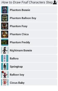 This Apps is a step by step instruction which will teach you How to Draw Fnaf Characters step by step. Like a personal art teacher, it will teach you how to draw dozens of different objects step by step and create amazing design, you can choose a character that you like and start to draw it.