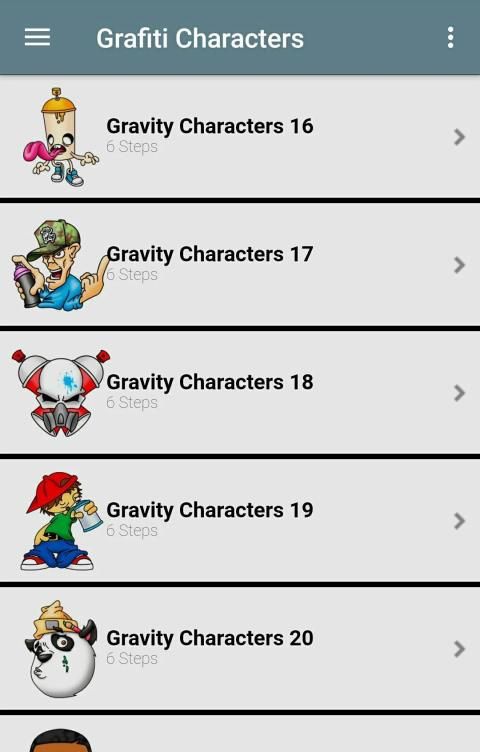 Pelajari cara menggambar Karakter Graffiti langkah demi langkah seperti seorang profesional! Aplikasi ini mengumpulkan banyak pelajaran menggambar mudah untuk anak-anak dan orang dewasa untuk mengajarkan Anda dari tingkat pemula hingga ahli.