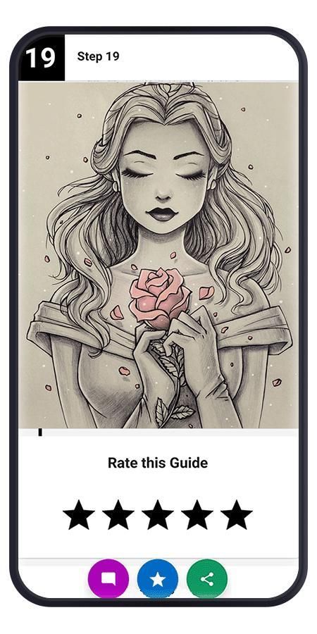 To learn how to draw princess step by step , in How to Draw princess you can choose your favorite lesson as they are plenty. And many other amazing easy princess drawings. Now all you have to do is to get the app and pick any princess drawing lesson you’d love to learn then start following the step by step drawings until you get your personal super princess drawing .