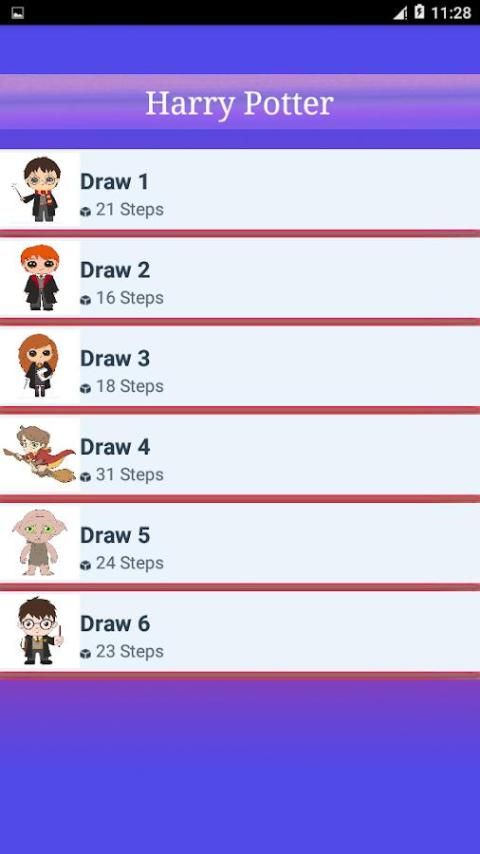 Aplikasi ini adalah sebuah aplikasi untuk gambar mudah karena mengajarkan anak-anak Anda dan membantu Anda untuk belajar cara menggambar karakter Harry Potter dengan mudah oleh langkah rinci kami demi langkah tutorial meskipun dengan kemungkinan untuk menggambar dan melukis pada perangkat Anda, Ini kegiatan yang menyenangkan untuk belajar menggambar untuk anak-anak.