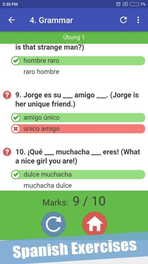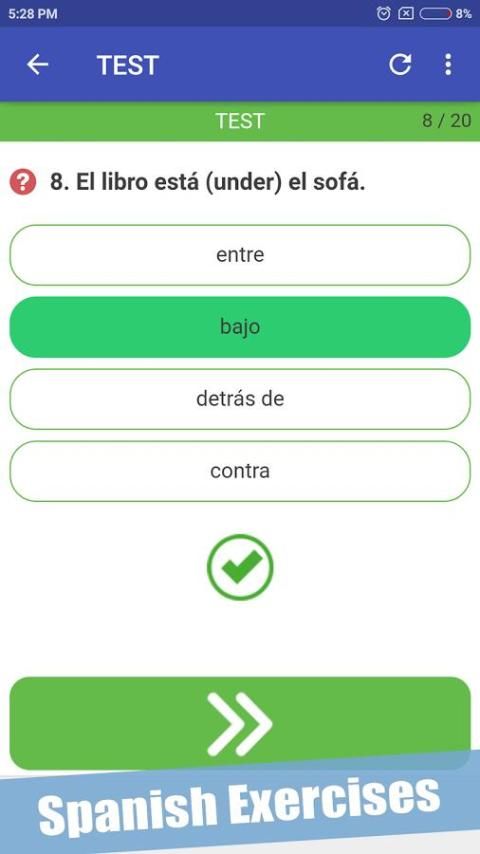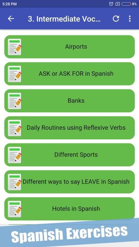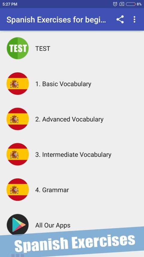 Pace diri saat Anda pergi melalui hampir seribu latihan Spanyol tersedia di aplikasi tersebut. Hanya dalam hitungan minggu, Anda akan memiliki pengetahuan penting dari kosakata Spanyol!