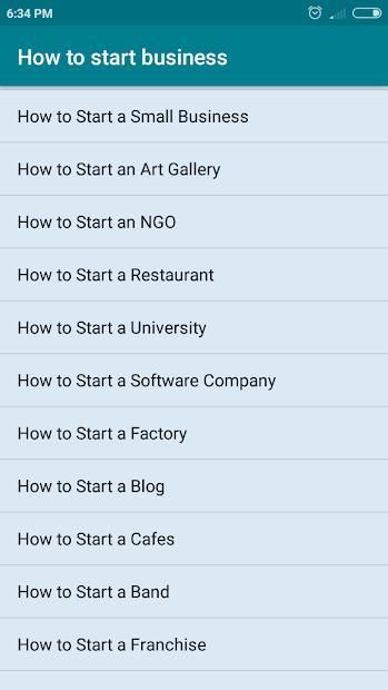 Bagaimana memulai aplikasi bisnis berisi informasi tentang mengikuti kategori bisnis