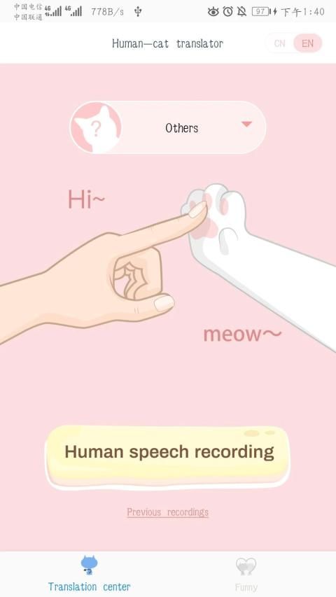 Human to Cat Translator – Communication with Your Cats is a funny communication tool between human and cats. It will translate human language to cat language in real time, so that the cat will know what you mean and what you want them to do, the communication between you and the pets is getting closer.
