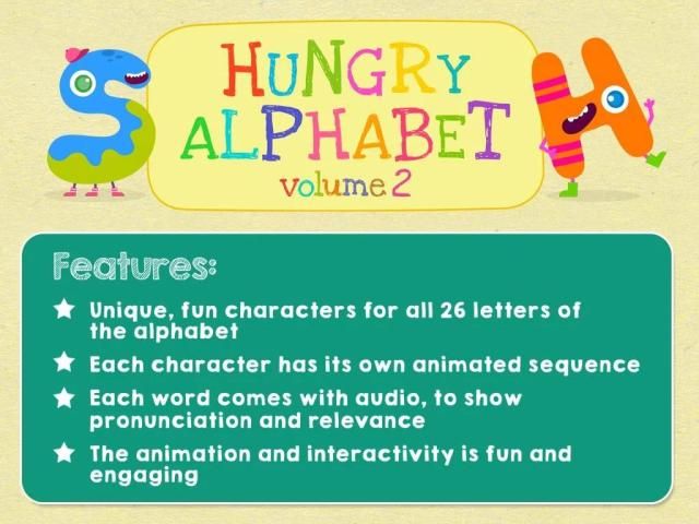 Lapar Alphabet adalah permainan yang sangat menghibur dan menarik alfabet baru. Biarkan orang-orang muda Anda memiliki menyenangkan memperluas kosa kata mereka dengan bantuan monster Alphabet Hungry. Setiap rakasa berbentuk seperti huruf favorit mereka sendiri!