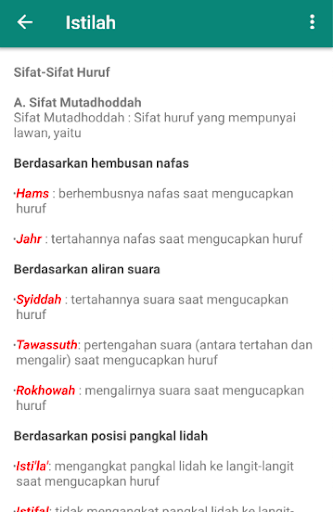 Aplikasi huruf hijaiyah yang disertai makhraj (tempat keluar huruf) dan sifat-sifat yang dimiliki oleh huruf tersebut.