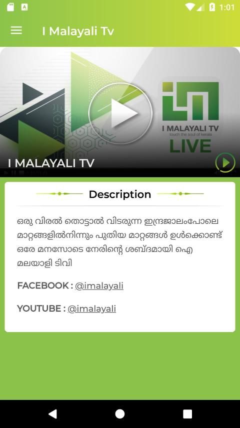 I Malayali TV, Saluran Televisi Online 24/7 yang berdedikasi di Malayalam, didirikan oleh yang didirikan oleh Blue Eyes Media Lab. Kalmandapam, Palakkad. Media hiburan bernilai tinggi secara eksklusif menampilkan kehidupan dan berbagai sisi ekspatriat Malaysia di Kerala