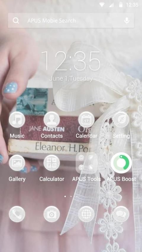 This theme is designed for APUS Launcher. With APUS Launcher, you can personalize your home screen with APUS Themes and Wallpapers, use APUS Mobile Search to find apps or websites easily.
