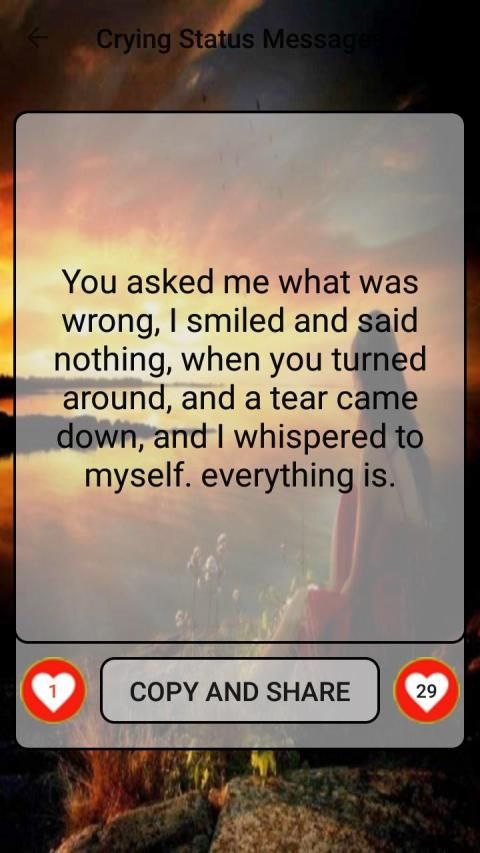 We are often feeling sad or depressed for many reasons, at that time we can not control our emotions. Tears are falling down…its called cry! We are also crazy to express our crying situation with various Crying Status. It is not only express yourself but also it is expose relations between cry and life.
