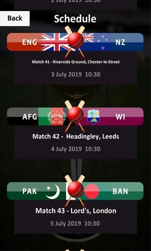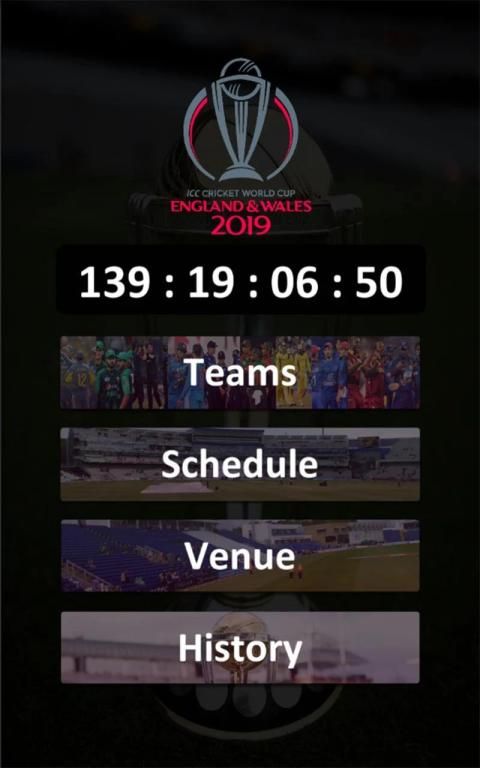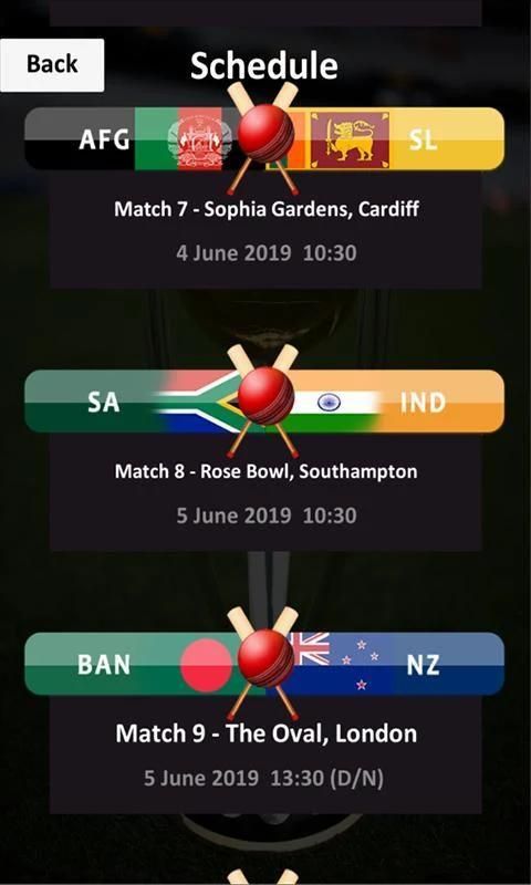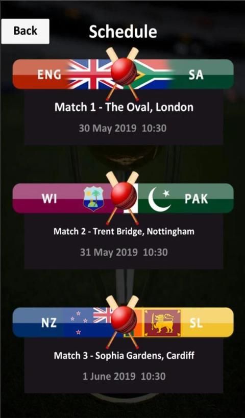All Player list with information Cricket World Cup 2019 Match Schedules International Ranking section Teams Info and much more for Cricket Lovers. All this feature in just one click away from you so download cricket app and get all about sdsd cricket world cup 2019 and enjoy the moments with our updates and strongly designed app of 2019. ICC Cricket World Cup 2019 Schedule for all the cricket lovers and fans knowing all about cricket and history of this big game challenge. Know this all about 2019 world cup with this stunning featured app of 2019. This sdsd time format for the tournament will be a single group of ten teams the best of world cricket. Every team has to play nine matches with other nine teams and then the top four teams move to a knockout session of semi-finals and a then the big final of ICC cricket world cup 2019. ICC Cricket World Cup 2019 Schedule is here for you to get an entertainment session. The full schedule Venue teams and history of ICC Cricket World Cup 2019 sdsd given in our app so that you can look up the upcoming matches and make yourself free at the time of big matches you love more. Our app is working offline so you should have easy access to the schedule of 2019 World Cup cricket.