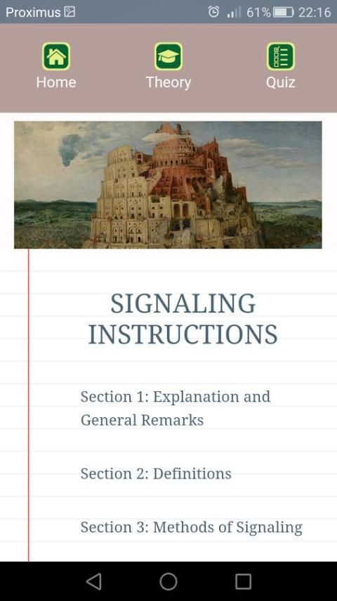 Di sini Anda akan menemukan teks ICS sinyal petunjuk. Gunakan ini sebagai referensi latar belakang. Teks dibagi dalam 10 bagian. Semakin banyak Anda tahu semakin baik, terutama jika Anda harus mengambil ujian lisan.