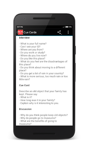 Penjabaran dari 9apps IELTS Cue Cards