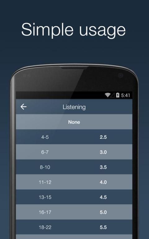 Pernah merasa nyaman ketika memeriksa nilai IELTS Anda secara online di masa persiapan Anda? Aplikasi ini akan mengurangi rasa sakit yang dengan membantu Anda menghitung nilai IELTS Anda pada ponsel Anda segera setelah menyelesaikan uji sampel.