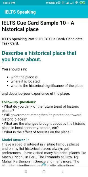So in this application, you will get study material for 2nd part of IELTS speaking exam. 300 cue card topics with answers. you will also get recently asked IELTS cue card topics.