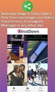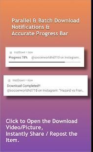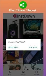 View your Download content , videos and images and share it directly from the app to social networks or repost it to instagram,whatsapp,mail,facebook or twitter.